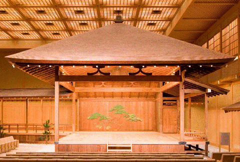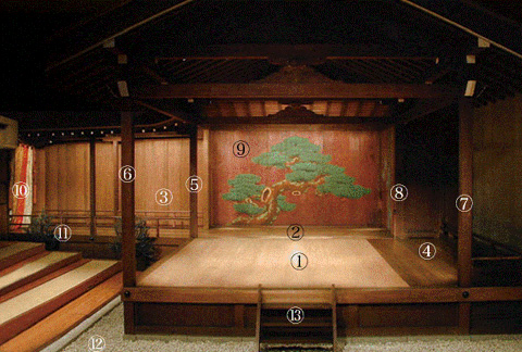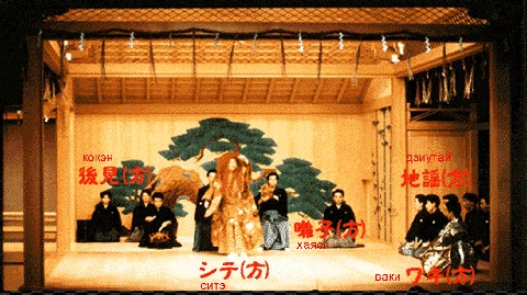 Сцена сделана из твёрдого японского кипариса. Для шумовых эффектов под полом ставят горшок.